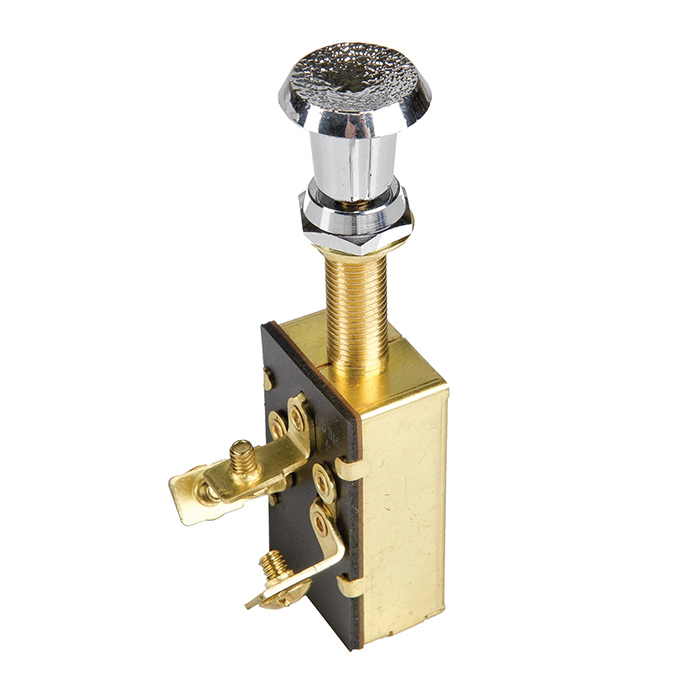 Замыкание/размыкание/замыкание цепи осуществляется продольным перемещением штока переключателя.